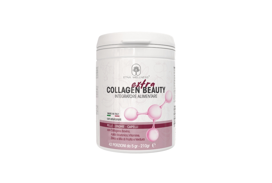 Collagen Extra Beauty è un integratore alimentare a base di collagene bovino arricchito con un mix di frutta e verdura, vitamine e zinco. Questo integratore è stato studiato per essere un valido alleato per la nostra salute: ci aiuta a proteggere le cellule dallo stress ossidativo, contribuisce al mantenimento salutare di pelle unghie e capelli.